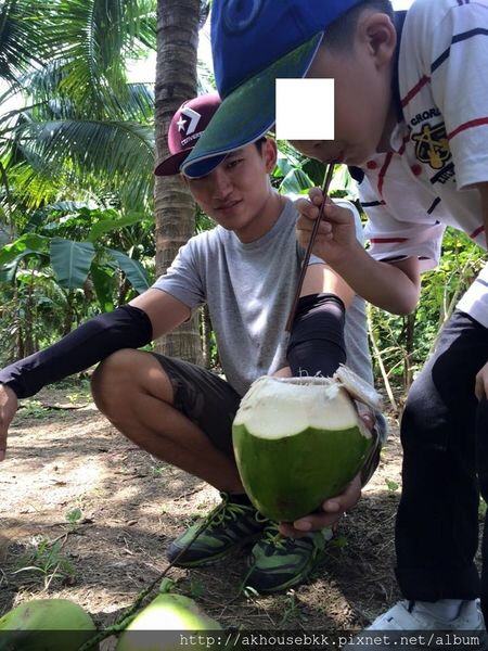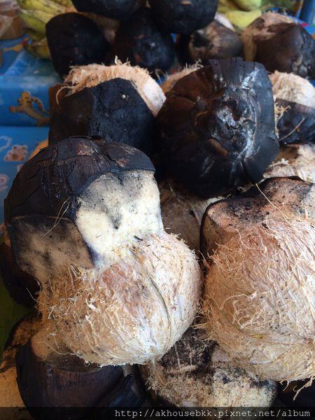 ✓貼心提醒:小朋友來泰國要注意喝椰子水的問題! 泰國的椰子新鮮好喝,但小朋友的體質比較嬌弱,喝多了容易拉肚子。烤過的椰子是最好的,像照片中這種。跟著AK的行程到鄉下去,可以喝到哦! 曼谷比較少找到燒得那麼完整的,幾乎都是用水煮過、再用火把表面燒過。所以在曼谷市的話,就買脫皮的椰子,不建議讓小朋友一個人喝掉一整顆新鮮的椰子汁,否則體內會太冷,加上水土不服,小朋友容易拉肚子。