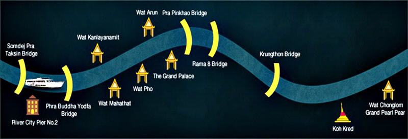15:00 hrs. 提供簡單午茶、咖啡,在明媚風光下,悠遊曼谷市,途經昭披耶河沿岸知名景點,如皇家龍船博物館、曼谷大皇宮、古樸建築著稱的法政大學、鄭王廟、大理寺…等。