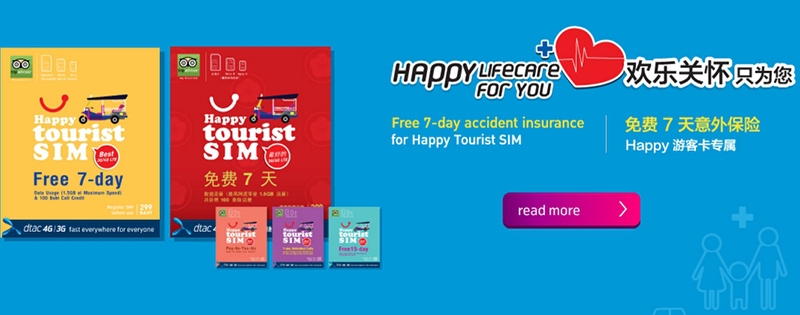 dtac:早期最先被Blogger寫出,文章量不少。最新推出的sim card,更加包含7天泰國境內意外險!
