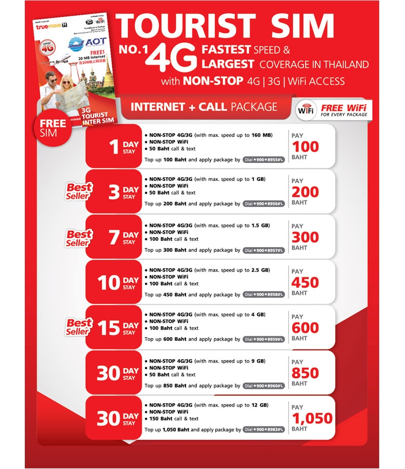 truemove:唯一有中文網頁說明,行銷做的很棒,很多曼谷人選用,但一上BTS,請收起手機吧!太多曼谷人用了,你的旅客卡絕對有很高的機率被一般曼谷民眾月付的速度分掉你的網速。