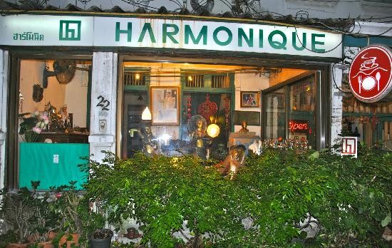 最後一家位於BTS Saphan Taksin步行約15分鐘的巷子裡,接近時有種世外桃源的感覺,外面花草茂盛,還以為是打理有素的私宅花園,走進去才發現別有洞天~這間餐廳叫做Harmonique,可是在西方旅客界火紅的很!不只因為得過國內外無數獎項,且所有旅遊雜誌、網站、書籍都標註為『必去』!因此前幾年這間餐廳滿滿的都是西方臉孔,直到近幾年東方旅客才開始發掘到這間深藏不漏的餐廳!店家的裝潢頗具特色,復古味濃厚並搭配上老闆收藏的古董,吃飯兼博覽,可說是一舉兩得,除了古色古香的室內座位,此餐廳也有戶外庭院的座位供客人選擇,微風徐來的夜晚,坐在庭園享受悠閒,便是一種幸福!再來是菜餚的部分,MENU上都有圖片,且店員會熱心介紹,不用擔心會很難點餐,口味上專為外國觀光客所調整,將傳統泰菜又酸又辣的口感烹調得滑順好入喉,是想嘗試泰菜卻怕酸辣的朋友的一大福音!源源不絕的顧客入內品嚐,絕對值得一去~前來之前記得先訂位,不然生意太好會沒有位子啦~