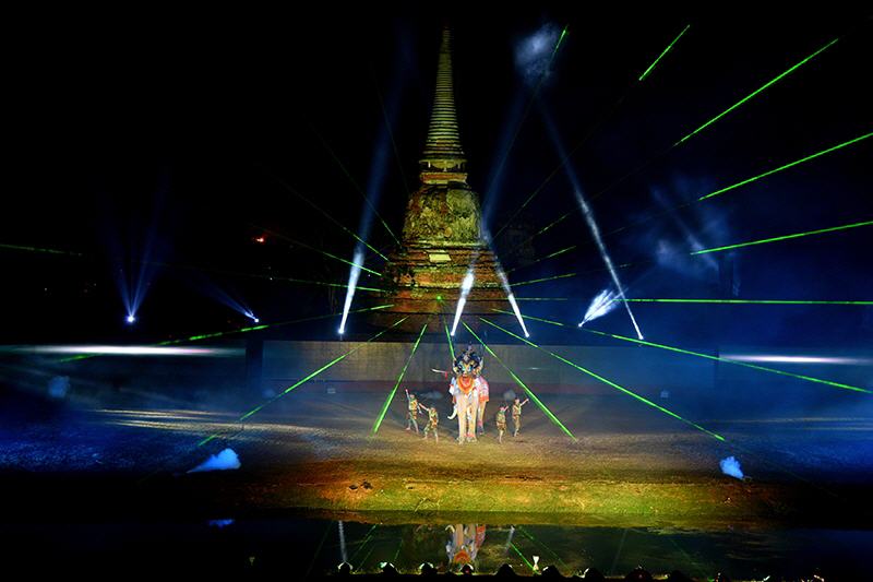 遺產節必看的聲光舞台劇,將燈光打在寶塔上,戰士們騎著大象,模擬大城時期的富盛繁榮到滅亡戰爭情節,氣勢磅礡的演出,豈容錯過!AK 貼心地為您準備多國語言導覽機,讓您更能了解舞台劇故事背景,不會有看沒有懂唷!
