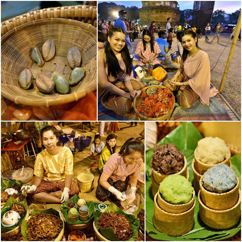 (以下為2014年活動介紹,每年略有不同,但園遊會跟舞台劇表演,每年都會有的!)園遊會腹地廣大,布置風格仿效古代市集,除了有吃不完的美食,還有傳統工藝小物,讓您在欣賞舞台劇之前可以飽餐一頓,還可以帶滿滿的特色戰利品回家唷!不過,需要兌換古代幣,才可以開始Shopping,兌換處有著身穿傳統泰服的美女幫您服務唷!傳統小吃的擺設很古色古香,使用竹簍/陶具來盛裝,讓人彷彿置身泰國大城王朝時期!