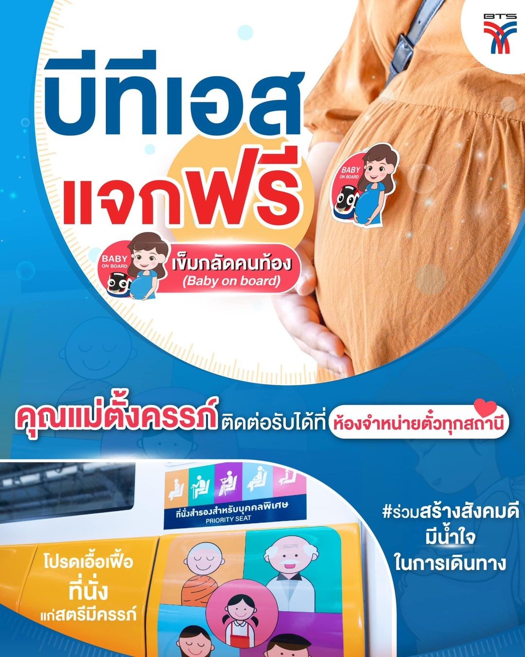 泰國習俗上,孕婦會在肚子別上別針。目前BTS也提供免費別針貼紙供孕婦索取,讓孕肚不明顯的準媽媽在擁擠的車廂中可以被注意到。