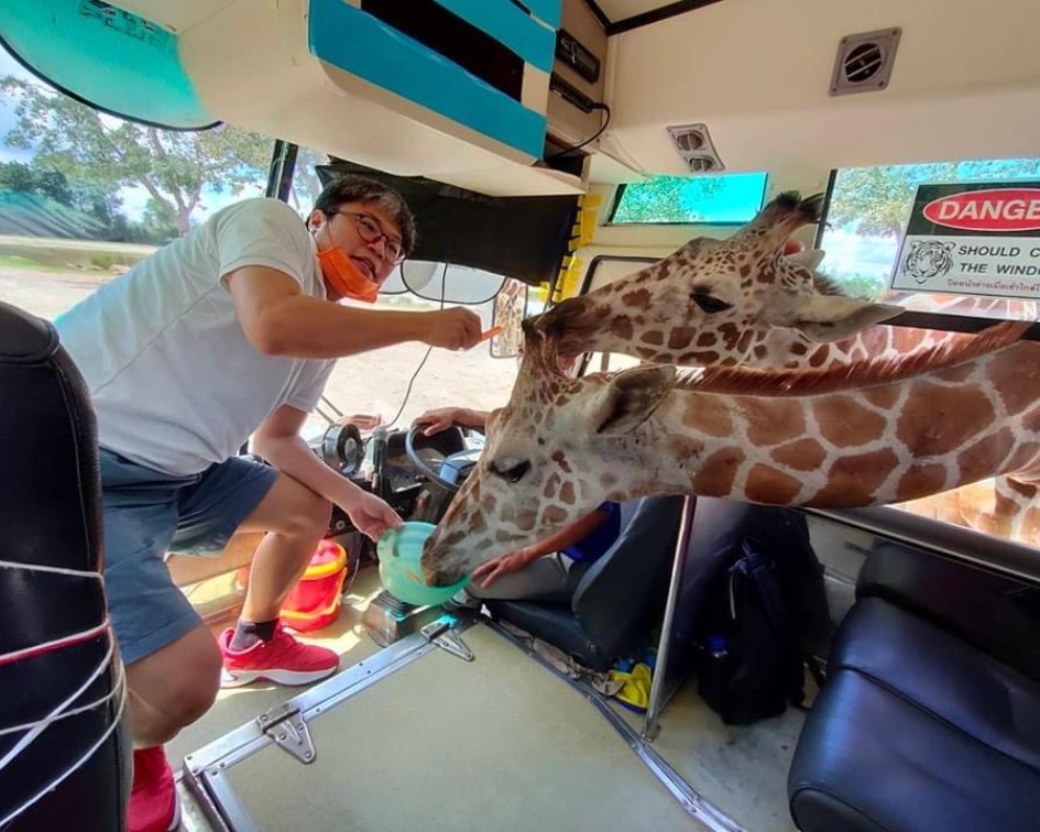 -泰國第一家!可以在吉普車上餵長頸鹿的動物園。