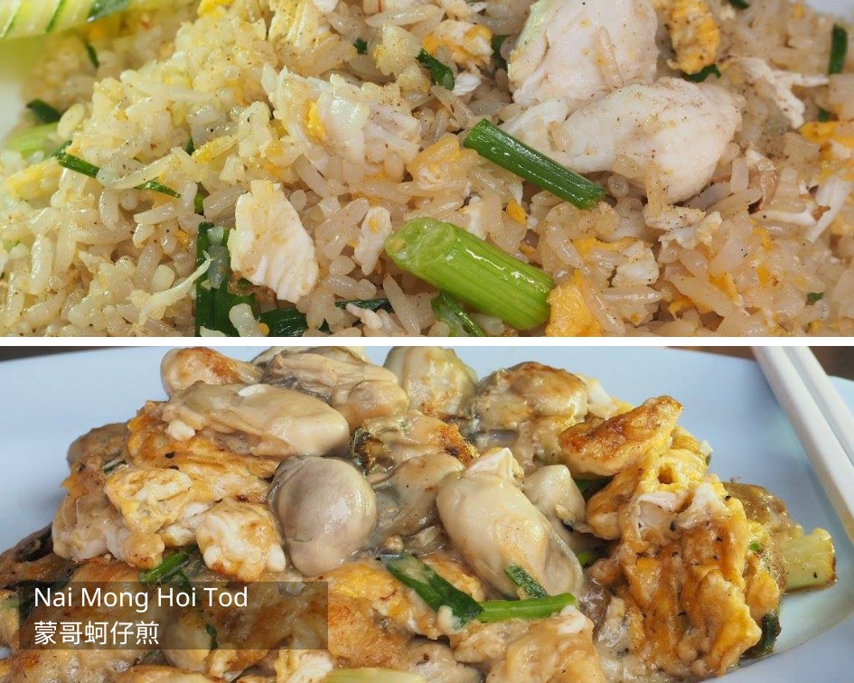 蟬聯6年米其林指南的路邊小店,相當厲害啊!店裡的菜單很簡單,推薦:酥脆炸蛋蚵仔煎、蟹肉炒飯兩款。口感跟台灣的蚵仔煎不太一樣,蚵仔新鮮、非常大粒,蛋也料理得很好。蟹肉炒飯100銖也很不錯,真的不一定要去排痔姐那家。