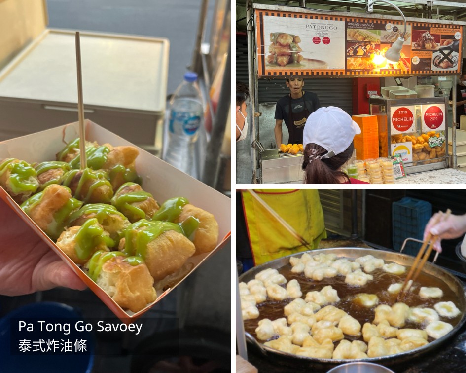 米其林餐盤推薦,泰式炸油條!油條外酥內軟,搭配香甜的煉乳或香蘭葉沾醬。傍晚營業到深夜,是宵夜甜點,不是早餐唷。