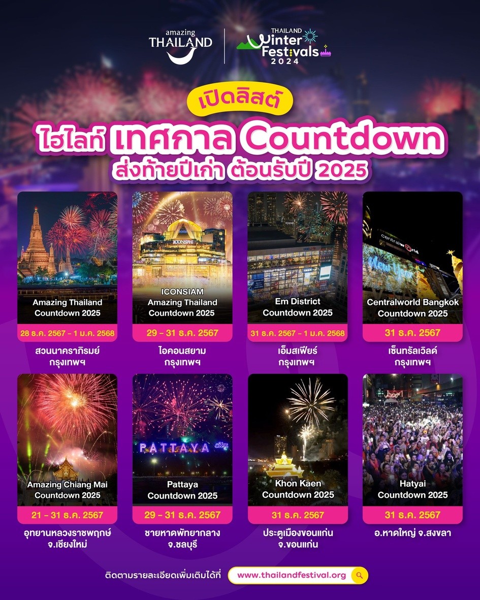 ,一定要到泰國玩,用煙火迎接2025吧!藝人LISA在曼谷陪你一起過新年!清邁、芭堤雅等其他城市也好有氣氛~一起來看看泰國觀光局推薦今年泰國的跨年倒數活動有哪些精彩地點吧:
