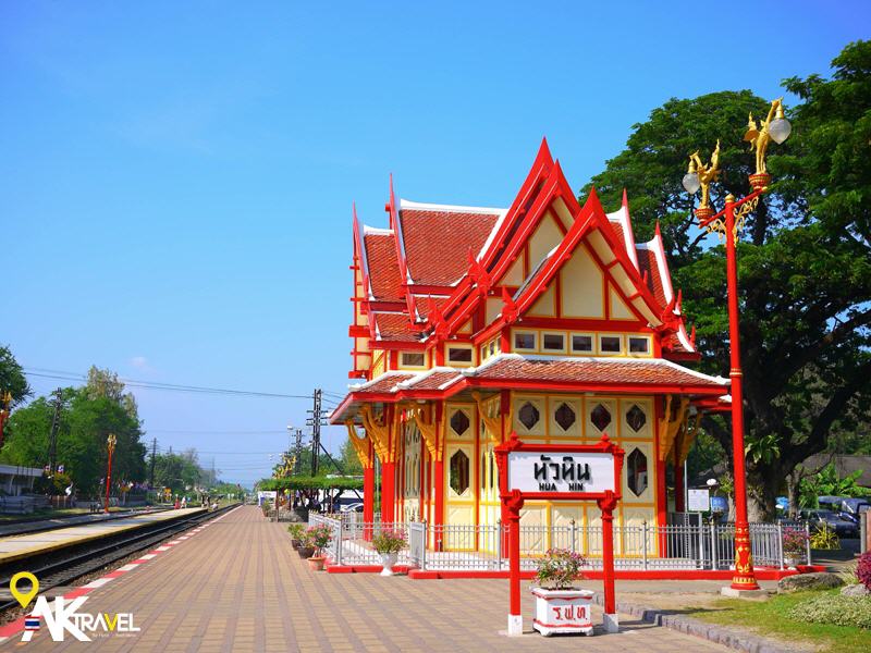 98年歷史的華欣車站,其造型典雅精巧,主體建築風格採十九世紀盛行的維多利亞式與泰式概念建造,由柚木打造,以乳黃為主色,由一支支鮮紅梁柱支撐,山型屋頂是一大特色,至今保存良好;在大眾候車站亮,有的獨立建物,是過去泰皇搭乘火車時的皇室御用候車亭,如今以柵欄圍起,遊客可在欄外參觀,遙想當年皇室候車情景,車站附近還有老火車展示區,收藏百年歷史蒸氣火車頭,鐵道絕對不能錯過之處,此地亦是部落客強力推薦華欣必拍建築之一。
