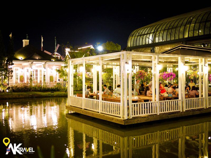 位於曼谷郊區,專為曼谷豪宅區所打造的夢幻餐廳,廣受泰國人民及各國觀光客好評,英式庭園造景,在門口就開始消耗各位相機記憶體,進到園區中,幾乎讓手中的相機捨不得停下來,是曼谷最美麗的餐廳之中。餐點中有西式、泰式料理供各選享用。從黃昏到夜晚開燈,讓您能在園區最美麗的時刻用餐。