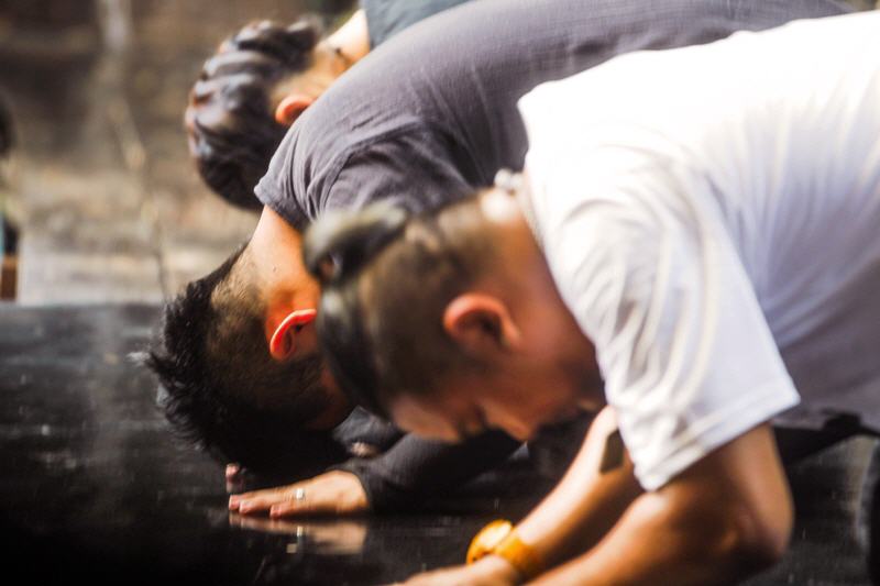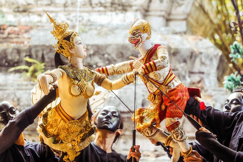 主持人以泰文、英文夾雜的介紹開場,拜神儀式後終於拉開表演序幕,伴隨泰式傳統音樂而來的是幾名戴黑色面具的演出者,沒有表情的他們,卻透過肢體展現細膩的情緒,每個舉手投足間,一個擺手、蹬地,絲毫不馬虎,簡直是人、偶合一,一氣呵成。