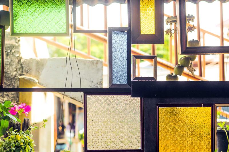 屋內的陳設細節讓人多次駐足,深怕錯過了什麼,掛在屋簷橫樑的彩繪面具,牆上木架擺設的手做小物,一旁老舊的古董翻印機,手做卡片,陶瓷上色等,讓人不禁想點杯飲料,選個適合自己的位子,發揮巧思創意,或是靜靜的,放空。