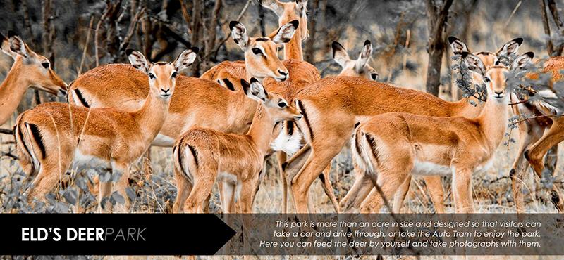 1. 展示區,即各種野生動物的活動區,面積大約有1,000萊。每種動物的牢籠是最接近自然的。這部分遊客可以近距離的步行參觀,如鹿園、鳥類參觀區及其它動物的參觀區。