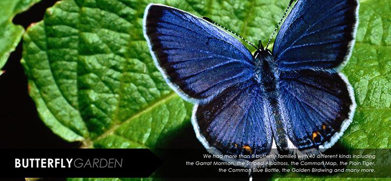 開放式蝴蝶園佔地面積達3萊,位於青山野生動物保護區和chompu山的接壤地帶。用了25年的時間來改善景觀和恢復森林。使環境中的動物種類有所增加,植物也更加完善。動物園也是昆蟲,如蝴蝶等昆蟲的聚集地及繁殖基地。它們利用景觀和各種花園作為棲息地。根據研究調查研究,發現白晝蝴蝶有8科40多種,即絲蛺蝶、斑蝶、粉蝶、雙斑趾弄蝶、蜂蝶、幸運轆蛺蝶、金鳥翼蝶等。