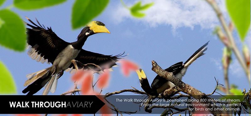 在5萊的面積內的參觀區是開放式動物園佈置的自然山景,裡面設有瀑布、池塘,以及種植有各樣的植物,同時還有大約80種鳥類,如蒼鷺、雉雞、鷺鷥、食蟲鳥等。此外還包括爬行動物及小型哺乳動物,如烏龜、鼷鹿等。