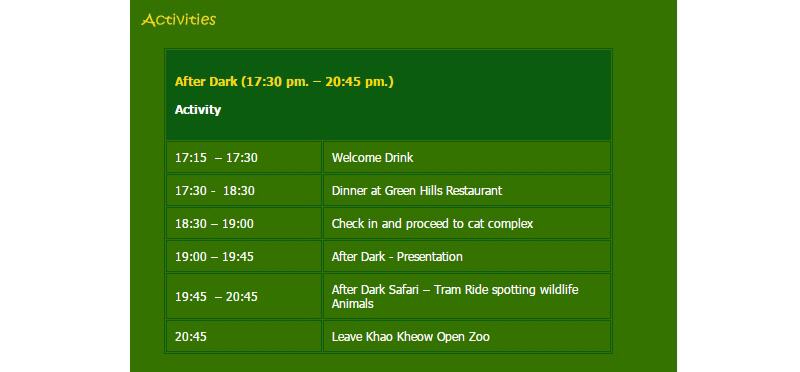 飼養動物的數量是泰國第一,綠山主要以大量的動物為賣點,比起台灣的六福村動物園強上很多, 綠山最著名的就是可以在園區內「餵食動物」!泰國綠山野生動物園位於曼谷與芭達雅的中間,占地約250萬坪,全區分為以下三部份: