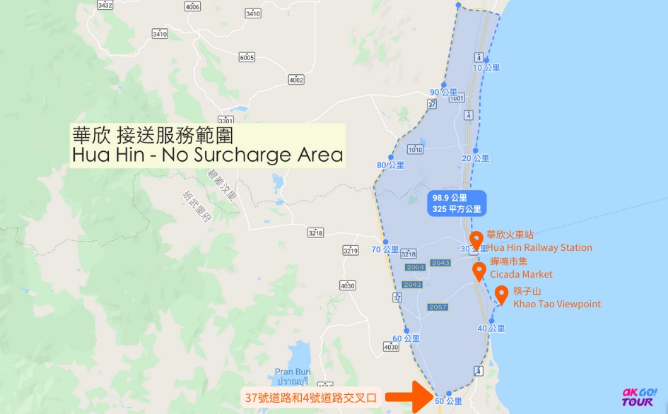 - 由曼谷市區 (Bankgok),前往曼谷 (Bangkok)、或芭達雅 (Pattaya)、或華欣 (Hua Hin),往或返的單程接送。