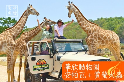 安帕瓦+賞螢火蟲+華欣動物園吉普車上餵長頸鹿