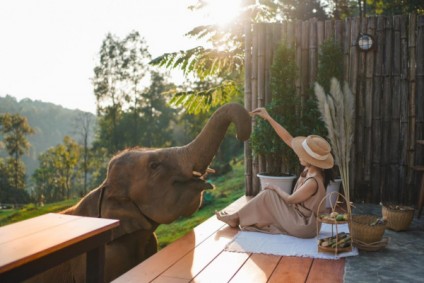 喝咖啡、近距離餵食拍照,看大象小象山坡悠閒漫步,太可愛太...