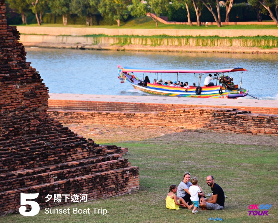 - 夕陽下搭乘長尾船遊河,欣賞兩古蹟。