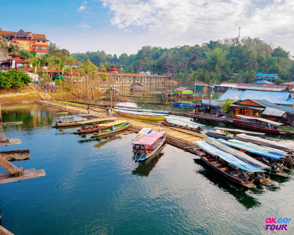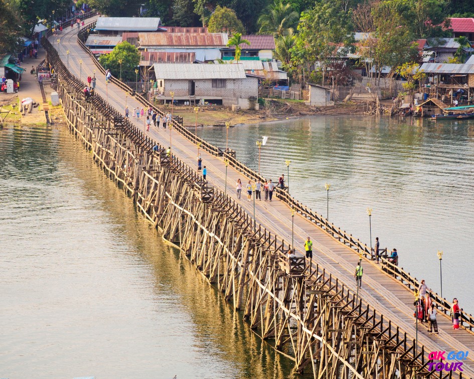 位於泰國邊城的Sangkhlaburi(桑卡布里小鎮)為孟族的一個村莊,清晨的薄霧虛無飄渺,宛如神仙之境,所有壓力皆拋諸腦後了。其中著名之孟橋,全長400米為竹造橋,於1993年建造完成,雖然於2013年因颱風有部分被破壞,所幸於2014年由軍隊及當地人一起重建,才重現往日光彩。