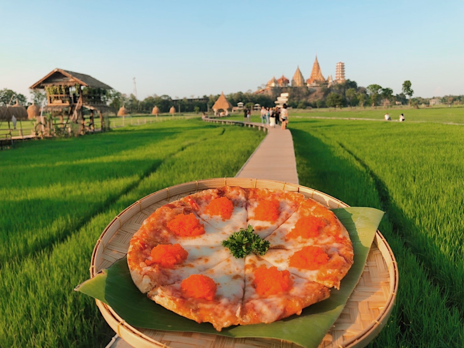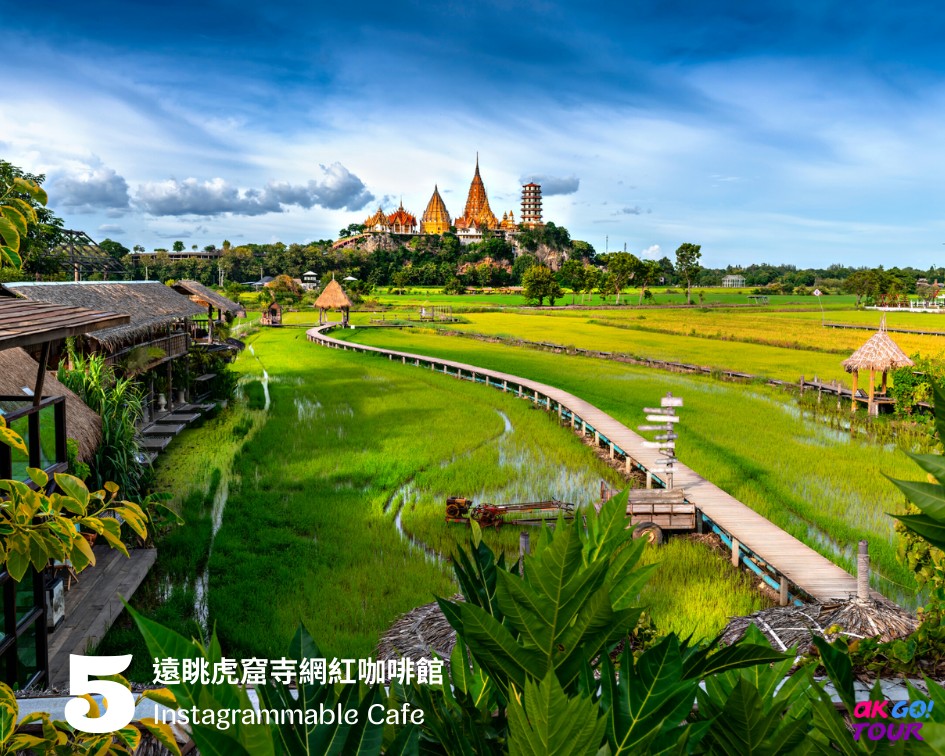 除了二戰遺址必看之外,北碧的層疊山巒及自然景觀,也讓人感到寫意而靜雅。這家Cafe’座落於北碧鄉間、位在山腳下的一個廣闊田野中央,在農忙季節長滿綠油油的水稻,收割後蛻變為土黃大地,很有意境。視野一片遼闊,在自然景觀中渡過悠緩午后,呼吸芬多精,心曠神怡,是泰國人近期非常熱門的打卡景點。