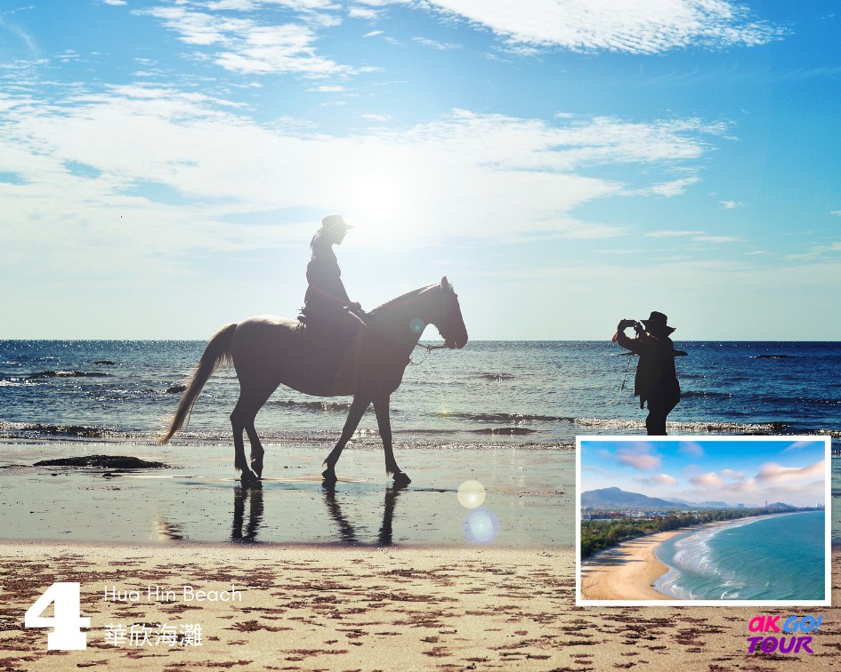 緩慢的華欣海灘,點一杯冰飲,尋一把海灘椅,躺下,任由海風吹撫。又或找匹馬,與牠一起漫步海灘。(海灘騎馬,自理)