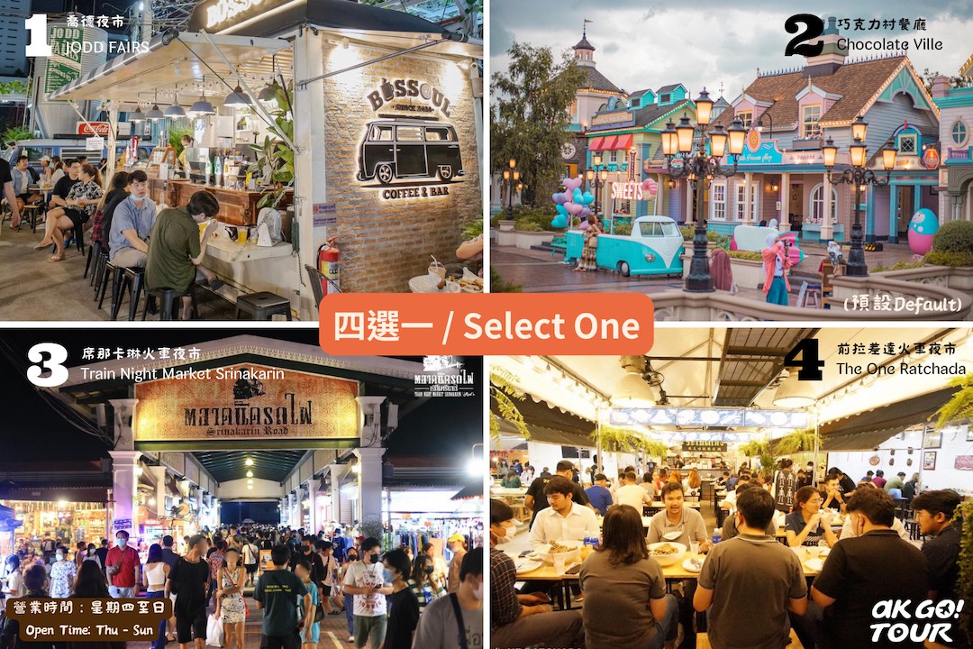 網紅景點或夜市4選 1,預訂後,請直接聯絡客服,告知選擇地點;若無特別說明,將預選「巧克力村餐廳」。