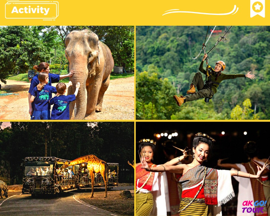 泰國唯一夜間動物園、叢林大象保育活動、叢林飛躍、老清邁文化中心蘭納晚餐饗宴等特色活動。