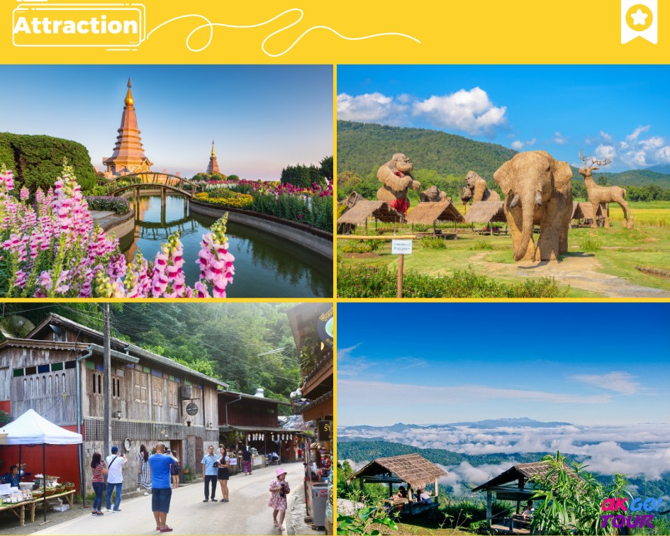 - 500 泰銖 - Doi Mon Cham Strawberry Farm, Doi Mon Cham, Doi Pui Scenic Lookout, Kew Mae Pan Natural Trail, Mae Kampong Village, Pong Yang Adventure Park, Queen Sirikit Botanic Garden, Small Farm Restaurant, Wachirathan Falls, Wat Phra That Si Chom Thong, Tiger Kingdom, Tiger Kingdom