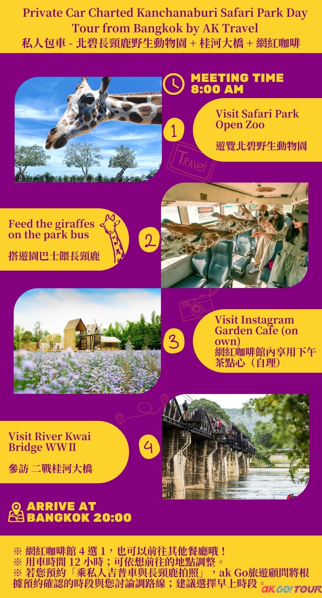- 非曼谷市區出發,將依距離酌收附加費,下單後,AK GO旅遊顧問將與您聯絡告知附加費金額。