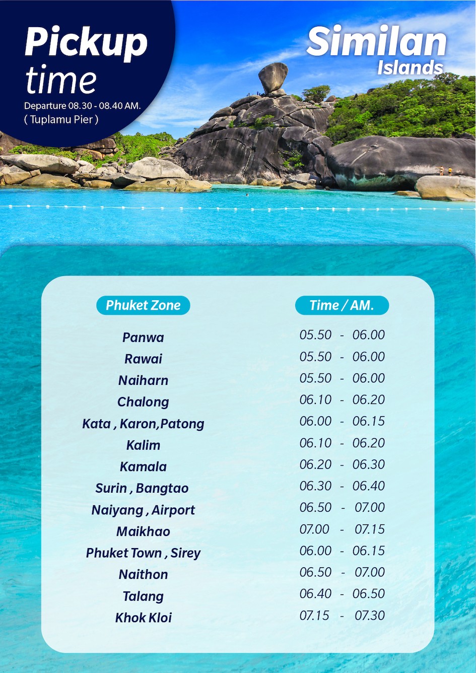 05:30 - 07:30 普吉、考拉飯店接送 (參見下接送時間)
