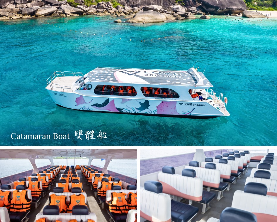 提供二種船支供您選擇:雙體船(Catamaran Boat)、快艇(Speed Boat)