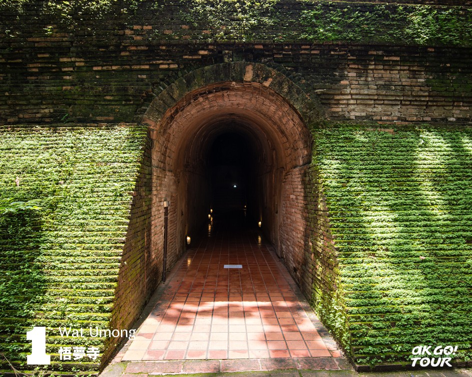 清邁最具特色寺廟之一的「悟夢寺 Wat Umong」,它具有600多年歷史,寺廟內有三向隧道串連的洞穴,彼此都是互通的,以往和尚就是在這個洞穴中修行。
