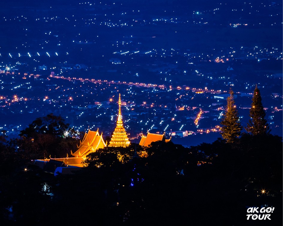 參拜之後,您可以在廟裡觀景台欣賞清邁夜景。