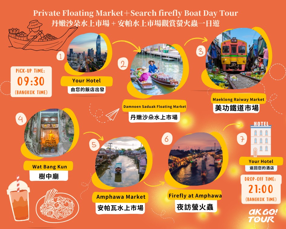 私人包團|丹嫩沙朵水上市場 + 安帕瓦水上市場觀賞螢火蟲一日遊(PV-A06)