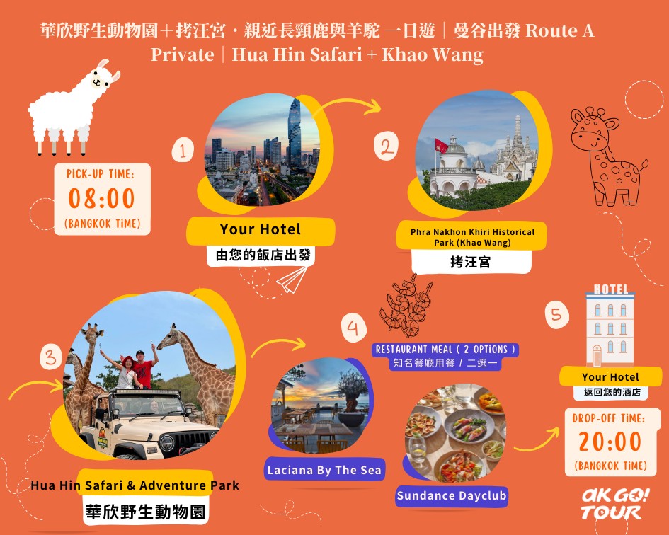私人包團︱親近長頸鹿與羊駝一日遊.華欣野生動物園+拷汪宮︱曼谷出發(PVH03)