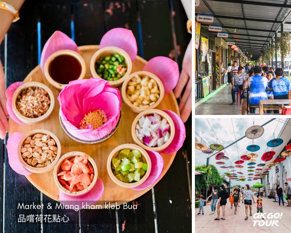 - 點心:紅蓮花水上市場享用,贈荷花點心Miang kham kleb Bua