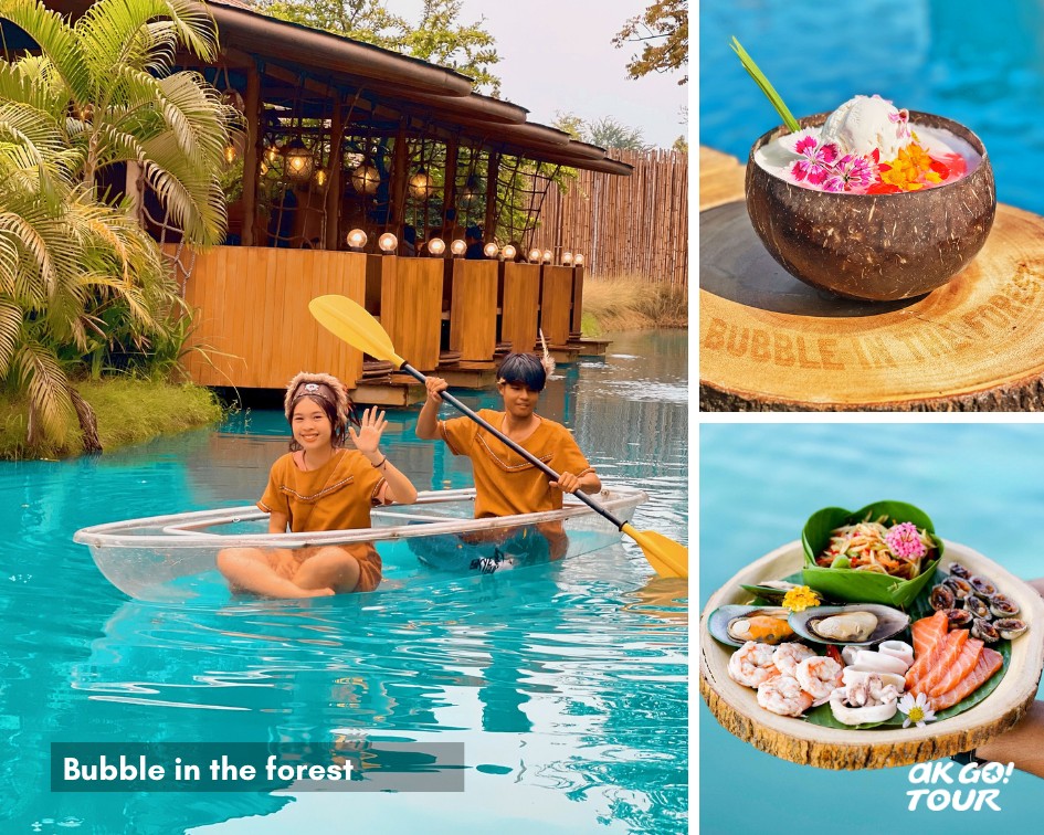 滿滿的馬爾地夫風格!有許多位於水面上的小屋,半開放藤編質感的圓型座位區,拍照特別好看。還可以自費租用橡皮艇,在清澈的水塘裡悠然放鬆。
