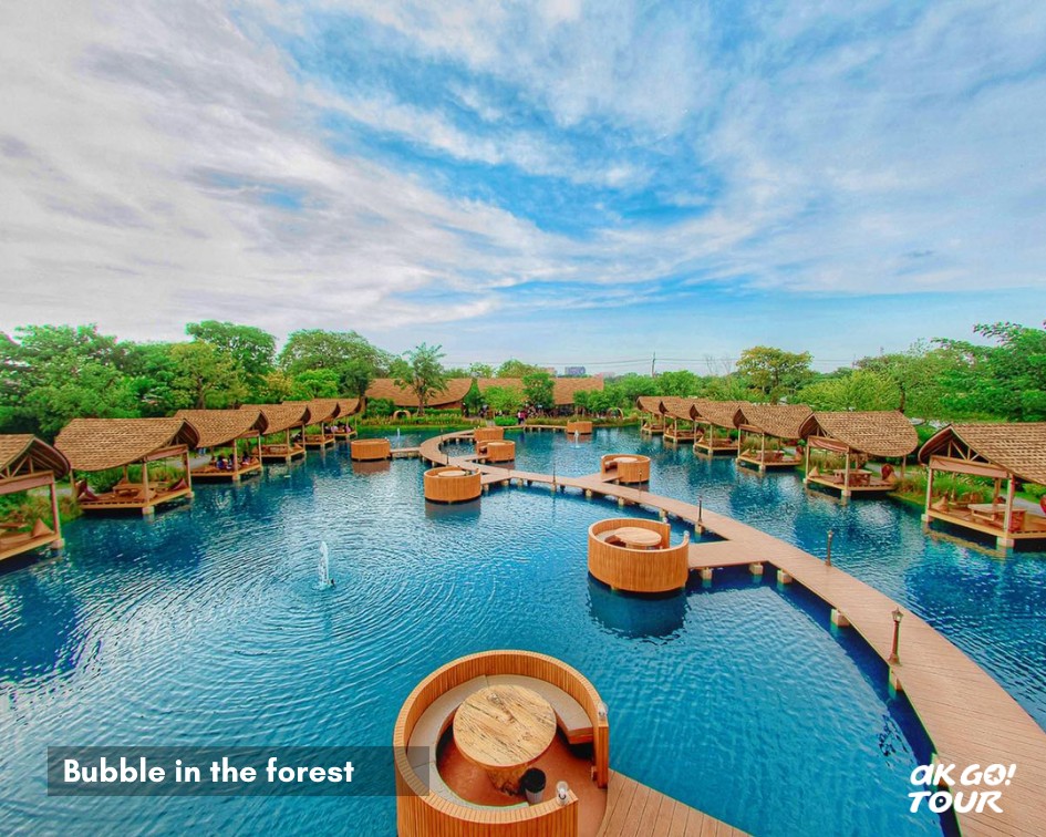 滿滿的馬爾地夫風格!有許多位於水面上的小屋,半開放藤編質感的圓型座位區,拍照特別好看。還可以自費租用橡皮艇,在清澈的水塘裡悠然放鬆。