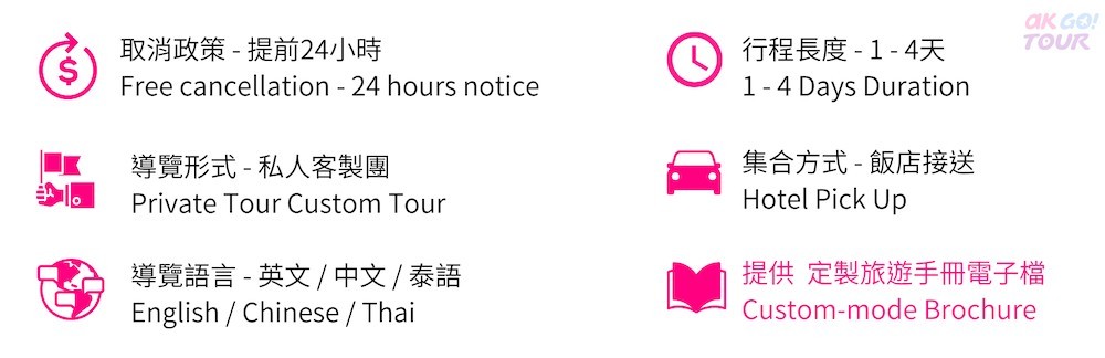 建議您,行程結束後,給辛苦服務的司機或導遊小費。您可視其在行程中之表現狀況調整,一般建議至少50~100THB/位/天,以茲鼓勵。