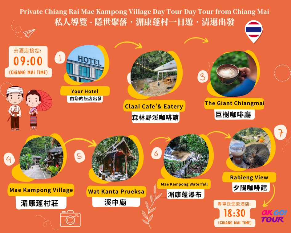 半山腰50公尺高空喝咖啡+百年山間村莊+野溪畔超放鬆+打卡地標湄康蓬瀑布