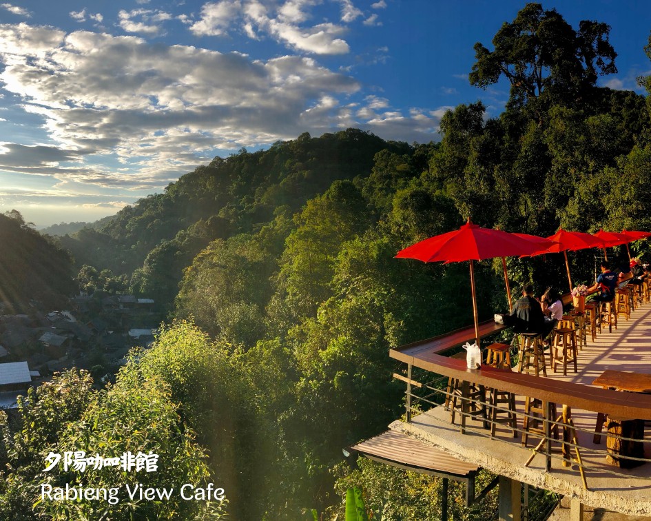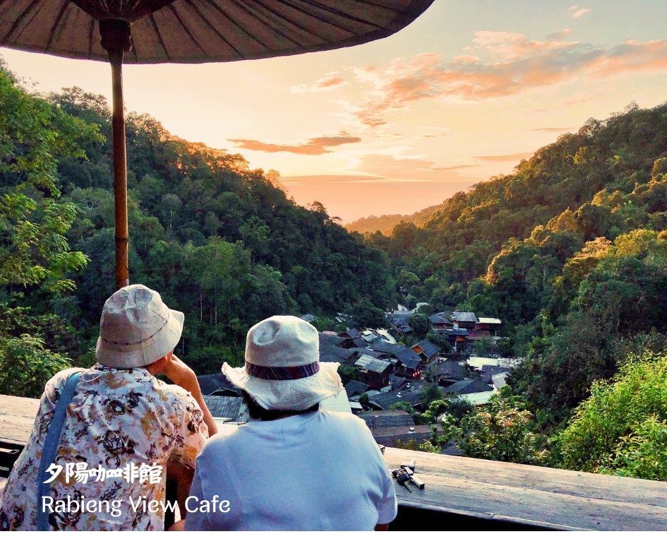 我們到高處看夕陽!從Rabieng View咖啡館,俯瞰整個村莊。夕陽餘暉下,山谷間染上浪漫的橘黃色,伴隨一杯暖心咖啡,晴天雨天的景色都像一幅畫。