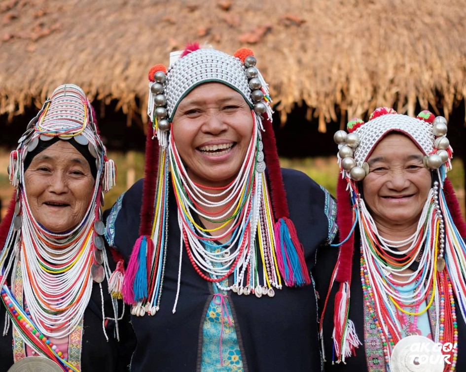阿卡族的服飾色彩鮮豔、款式繁複,配飾較多,尤其喜歡佩戴銀飾,頭飾往往是重點。