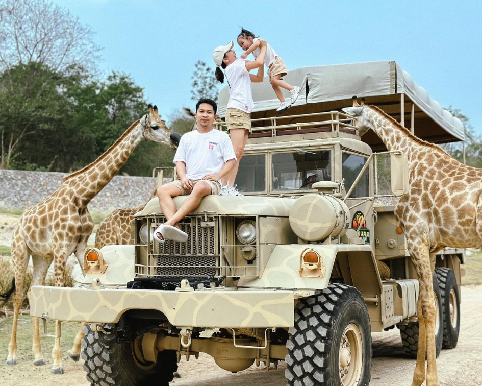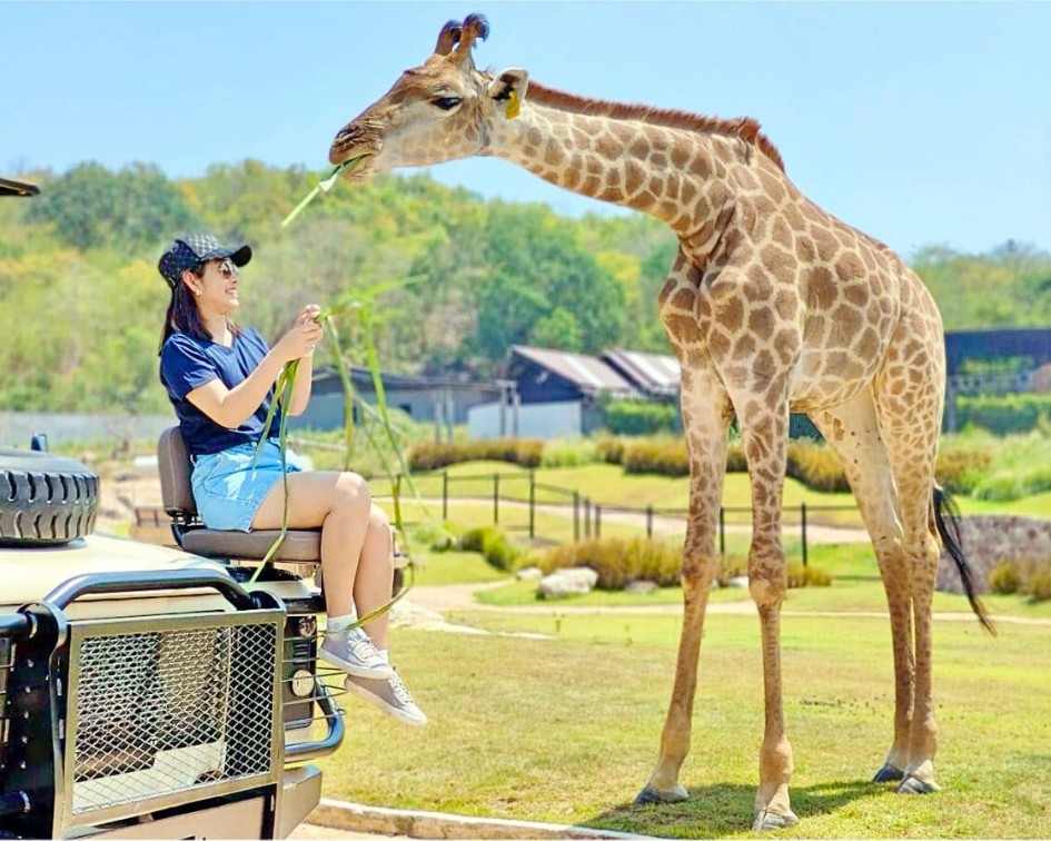 繼北碧府、大城動物園後,華欣野生動物園也推出吉普車上餵長頸鹿啦~