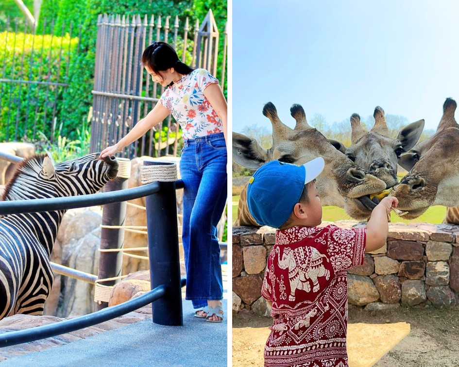 與動物玩耍以及餵養長頸鹿、長臂猿、鸚鵡、斑馬、餵羊駝