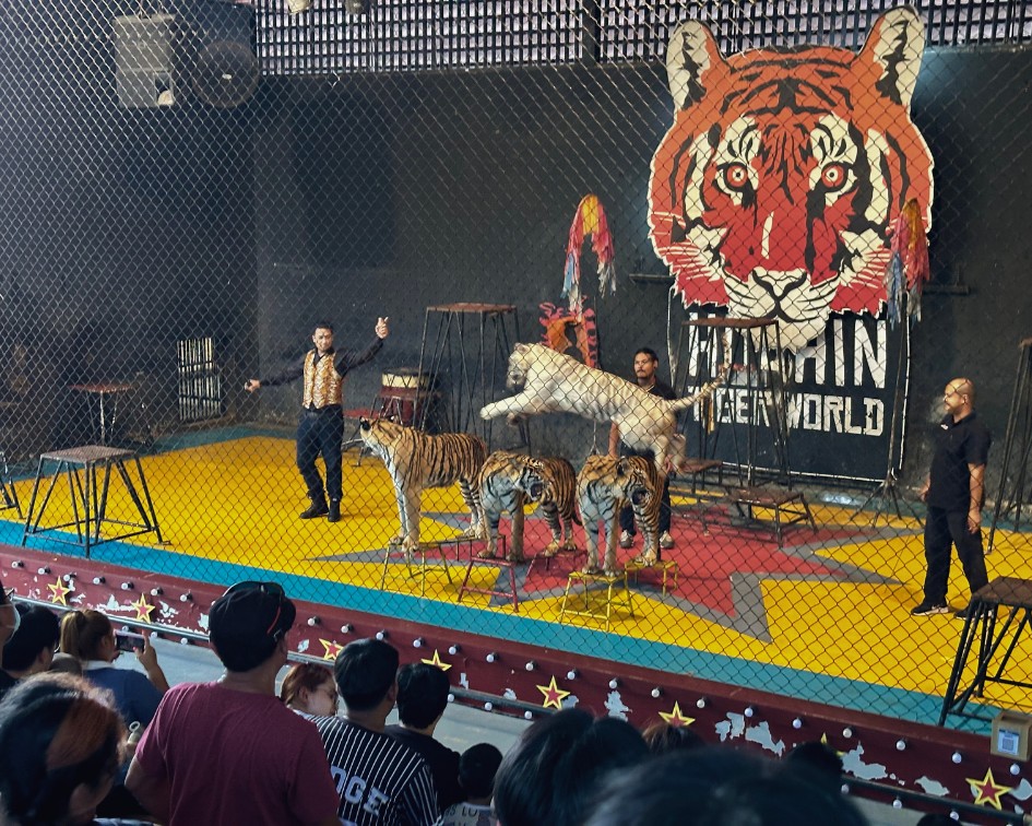 可以看大象表演、鱷魚秀、老虎秀、眼鏡蛇秀