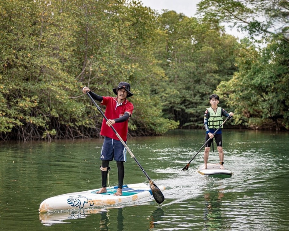 SUP=立槳。紅樹林立槳活動(Mangrove Forest SUP)將生態旅遊與水上運動結合,遊客可以在享受划槳樂趣的同時,近距離觀察紅樹林生態。